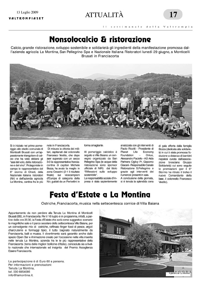 | Nonsolocalcio & ristorazione - Festa d'estate a La Montina |