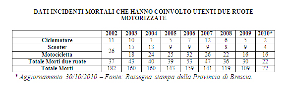 “L’Assessorato ai LL.PP. ha deciso di riproporla in considerazione dell’allarmante numero delle vittime degli utenti della strada sulle due ruote motorizzate nel territorio provinciale (ciclomotori, scooter e motociclette). – ha dichiarato l’Assessore ai Lavori Pubblici Mariateresa Vivaldini -. Tale categoria rappresenta nel 2010 il 30% del totale delle vittime, con 22 decessi contati dal primo gennaio al 31 ottobre. Non solo il livello di rischio è molto più alto della media (si registrano 30 morti ogni 100.000 motocicli circolanti rispetto ai 7 morti ogni 100.000 autovetture circolanti), ma il rischio presenta nel tempo un andamento regressivo, rispecchiando la tendenza nazionale e della maggior parte dei Paesi europei. L’Assessorato ai LL.PP. ha deciso di proporre proprio quest’immagine, sull’utilizzo del casco, perchè non solo è particolarmente adatta al tipo di fruitori del calendario “Brescia Calcio”, ma anche perchè particolarmente riuscita sotto il profilo della comunicazione sociale”.