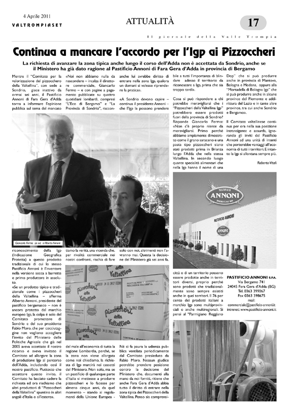 La richiesta di avanzare la zona tipica anche lungo il corso dell'Adda non è accettata da Sondrio, anche se il Ministro ha già dato ragione al Pastificio Annoni fi Fara Gera d'Adda in provincia di Bergamo