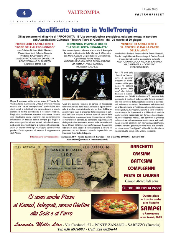 Qualificato teatro in ValleTrompia ( VERSIONE TESTUALE )MERCOLEDI 8 APRILE ORE 21